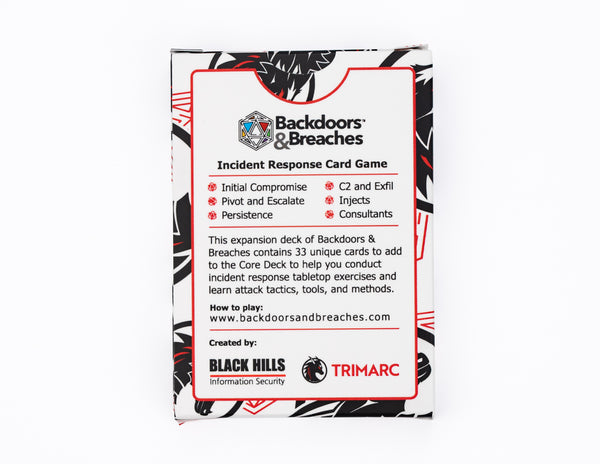 Backdoors & Breaches: Trimarc Expansion Deck v1 was created in collaboration with our friends at TRIMARC, to add additional attacks, injects, consultants, and procedure cards to the Core Deck.